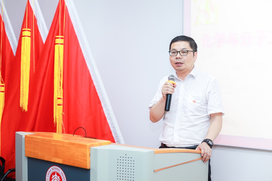 无机有机职工党支部党员教师刘路作为优秀教师共产党员代表发言。刘路老师表达了作为优秀教师共产党员要做表率的决心,表示要牢记“立德树人”使命,向前辈学习,立足岗位,扎实推进科研和教学工作,为“建教育强国,以教育强国”的光荣事业贡献力量。