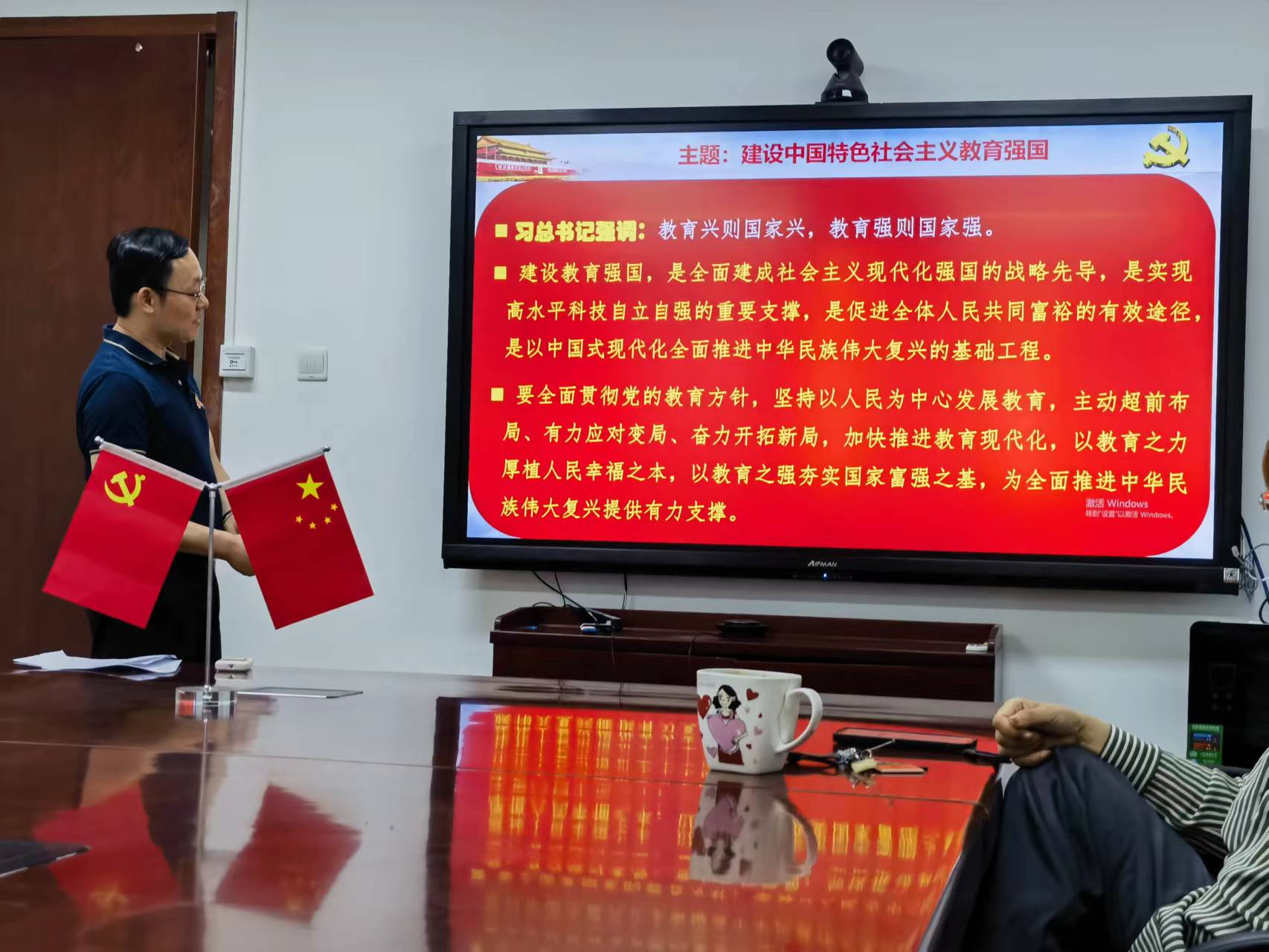 支部书记马士禹老师主持了会议并做了主题报告,传达学习习近平总书记在中共中央政治局第五次集体学习时的重要讲话精神。习近平总书记的重要讲话,深刻阐述了中国特色社会主义教育强国的丰富内涵,科学回答了建设教育强国的一系列重大问题,为加快推进教育现代化、建设教育强国、办好人民满意的教育指明了前进方向、提供了根本遵循。党员教师们都深受鼓舞、倍感振奋,也深感使命光荣、责任重大。田阳院长、李迪老师、陈启明老师等结合自己的教学科研工作和个人实际,畅谈学习贯彻习近平总书记在中共中央政治局第五次集体学习时重要讲话精神的认识体会,表示要以习近平总书记重要讲话为指引,积极投身教育强国实践,为全面推进中华民族伟大复兴提供有力支撑。