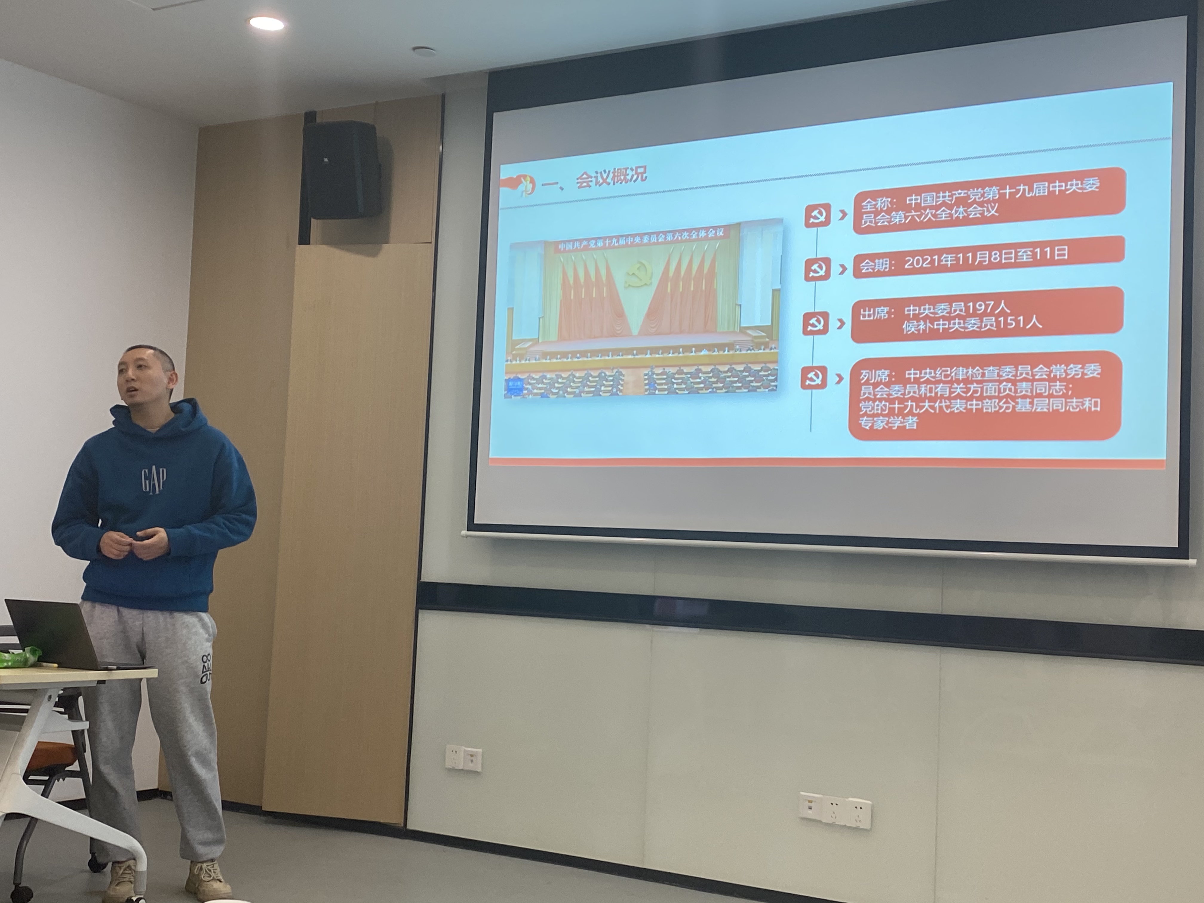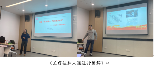 会议伊始,组织委员王丽佳和纪检委员朱通分别就1945年党的六届七中全会通过的《关于若干历史问题的决议》和1981年党的十一届六中全会通过的《关于建国以来党的若干历史问题的决议》作简要介绍。王老师结合《百炼成钢》微纪录片从背景及目标问题、主要内容和重要意义三方面对《关于若干历史问题的决议》进行解读,指出这一决议统一了全党的认识,加强了全党的团结,促进了人民革命事业的迅猛前进和伟大胜利。朱老师从历史背景、主要内容、历史作用和意义三方面带领大家学习了《关于建国以来党的若干历史问题的决议》相关内容,强调决议解决了如何科学地评价毛泽东和毛泽东思想,达到了“总结过去是为了引导大家团结一致向前看”的目的,为深入推进改革开放伟大实践提供了重要保证。