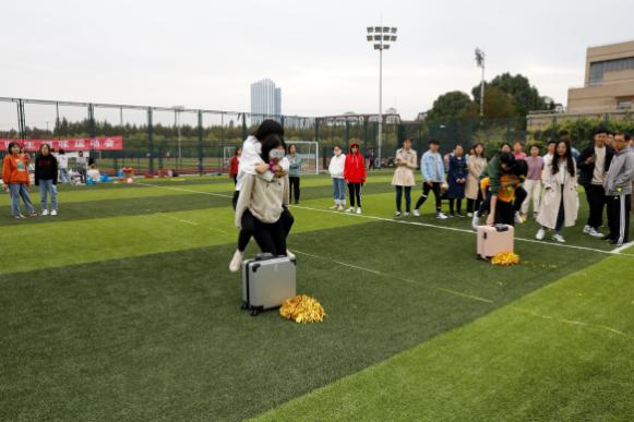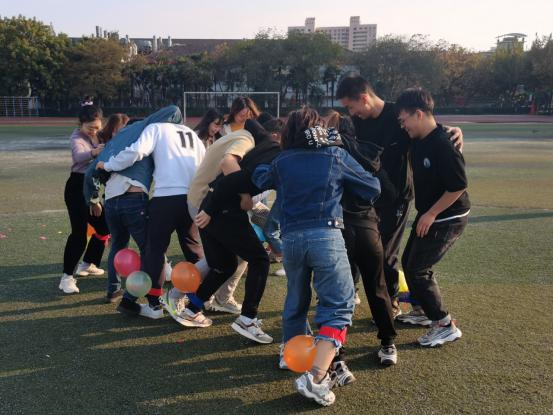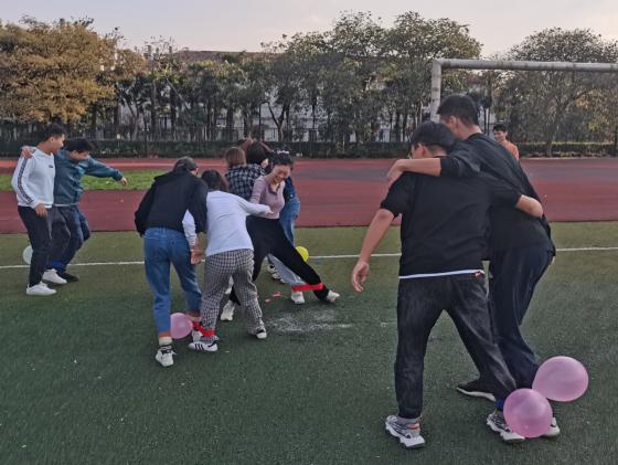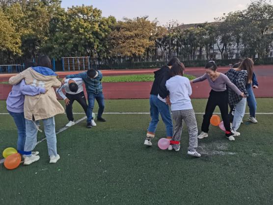 本次趣味运动会共设两个项目,包括“二人三足”和“疯狂踩气球”,由多个游戏环节组成。随着活动的开展,队伍成员们从相互陌生到逐渐认识,最终成为配合默契的小伙伴。围观的同学们也不时发出喝彩为他们加油打气,整个赛场洋溢着同学们的青春朝气,欢声笑语不断。丝带飘舞、气球飞动,恰如同学们的青春般色彩斑斓。
