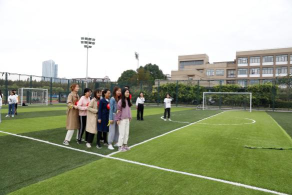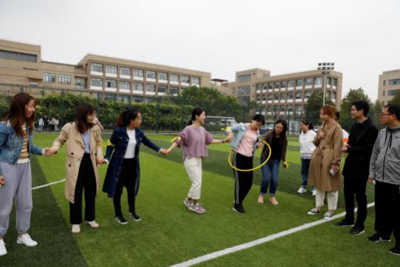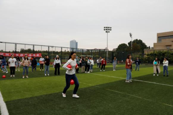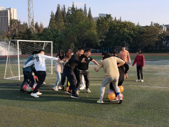 活动开始后,全体师生在主持人的安排下自由组队,10人一组(每队包含2位老师,8位学生),每组队员手腕上分别绑上了不同颜色的丝带,以此分成粉、紫、黄、绿四支队伍。随后,主持人介绍了本次比赛项目及比赛规则。麻豆社 党委副书记王婷婷老师在赛前的动员讲话中希望老师和同学们在科研学习之余多参加活动,在锻炼身体的同时放松身心,为祖国健康工作五十年。