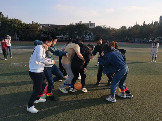 活动开始后,全体师生在主持人的安排下自由组队,2人一组,队员们手腕上分别绑上了不同颜色的丝带,以此分成八支队伍。随后,主持人介绍了本次比赛项目和规则,中北研会体育部部长程贵仁同学为本次活动致辞,传达了研会对参赛成员的问候。麻豆社 辅导员王梦雅老师在赛前的动员讲话中表示,希望老师和同学们在科研学习之余多参加活动,在锻炼身体的同时放松身心,为祖国的未来努力奋斗。