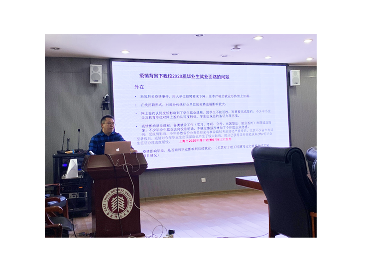 在本次讲座中,刘继亮老师首先分析了疫情背景下的就业形势和就业常态。刘老师指出,疫情对就业各项进程的影响最大,签约、落户手续受到了很大的干扰,疫情也促使同学们对求职国企、央企、事业单位的意愿更为强烈,同学们的毕业/就业压力交织。