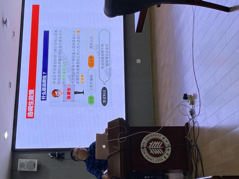 随后,刘继亮老师重点讲解了选调生的概念、政策和岗位优势,鼓励有能力、有才干的同学积极报考。刘老师指出,选调生是各省区市党委组织部有计划地从高等院校选调品学兼优的应届大学毕业生到地方基层工作,成为一名选调生,不仅能极大锻炼同学们的个人能力和综合素质,职业前景也具有明显优势。