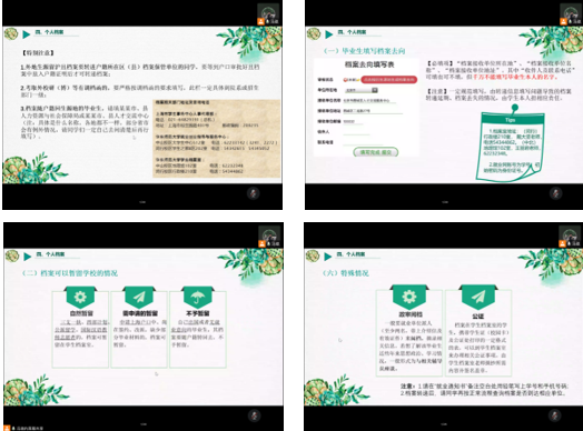 会议开始后,中北2021届毕业班辅导员冯琪老师依次讲解了毕业生在求职、毕业派遣中会涉及到的简历制作,就业推荐表、就业协议填写,以及档案转递等四方面工作细节。