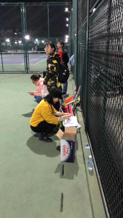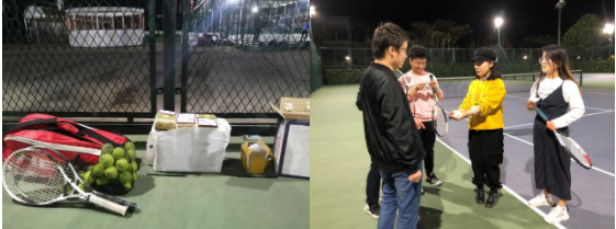 夜幕初降,来自麻豆社 网球联盟和研会的志愿者同学已经将本次比赛的物资运送到场,他们细心地检查球拍、记分牌,清点礼物和到场同学。当场地渐渐热闹,他们耐心地为参赛选手讲解比赛规则,祝福他们以球会友,通过运动愉悦身心。