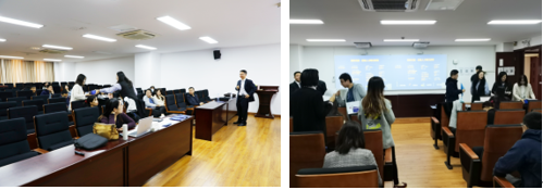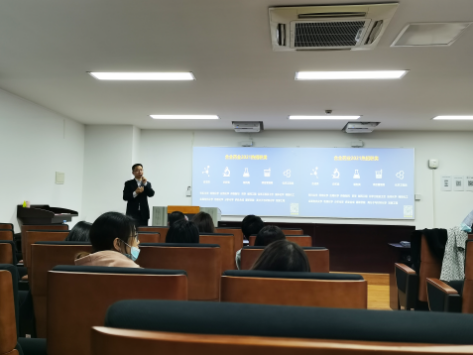 招聘会开始后,来自合全药业工艺研发部的高级主任施峰老师首先为同学们播放了公司宣传片,通过宣传片,同学们初步了解了该公司的发展现状及其面临的挑战。随后,施峰老师以“让天下没有难做的药,难治的病”为愿景,向大家详细介绍了公司的主要业务和服务对象,覆盖了从新药研发外包到商业化生产外包的各个阶段。通过PPT,施老师也展示了公司从创立之初到拥有一体化赋能平台的发展历程,介绍了公司目前所拥有的资质、奖项以及承建的项目等企业历史。通过施老师精彩的展示和讲解,同学们对该公司有了更为全面的了解和认识。