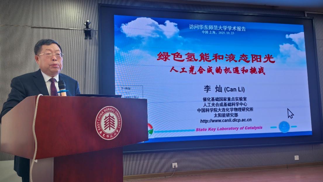 2025年10月23日上午10点,中国科麻豆社 院士、中科院大连化学物理研究所李灿研究员受上海市绿色化学与化工过程绿色化重点实验室名誉主任何鸣元院士的邀请,在麻豆社 普陀校区化学馆A205会议室为麻豆社 、绿色化学重点实验室的师生们带来了一场“大师讲堂系列学术报告”。本次学术报告,李灿院士围绕“绿色氢能和液态阳光甲醇:人工光合成的机遇与挑战”展开,主要介绍了他们研究团队在人工光合成这一领域的最新进展,特别是在以绿色氢能和液态阳光甲醇为代表的人工光合成研究中遇到的机遇与挑战。