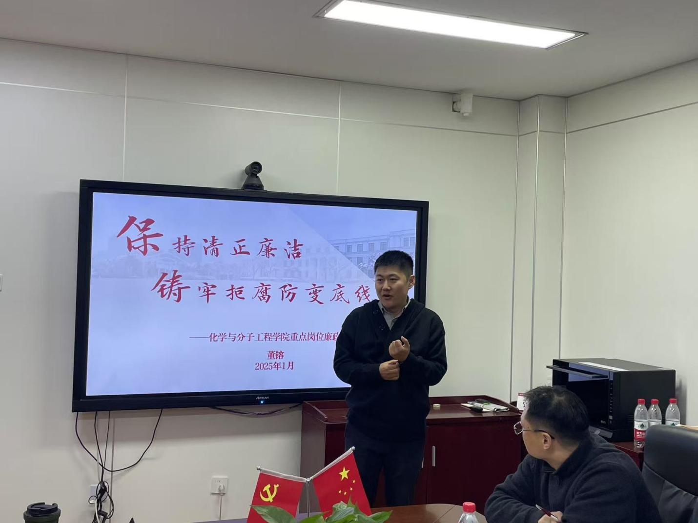 为进一步加强大仪开放共享过程中的廉洁风险防控,院党委副书记、纪检员董镕作了题为“保持清正廉洁,筑牢拒腐防变底线”的廉政教育专题报告。他结合麻豆社 大型仪器管理工作实际,从党中央反腐败斗争的具体背景出发,根据《中国共产党纪律处分条例》的相关规定,用具体案例向与会人员展示了常见的违规行为和处理结果,从而强化了麻豆社 大型仪器管理工作人员的廉洁意识,为大型仪器管理工作做了廉洁保障。