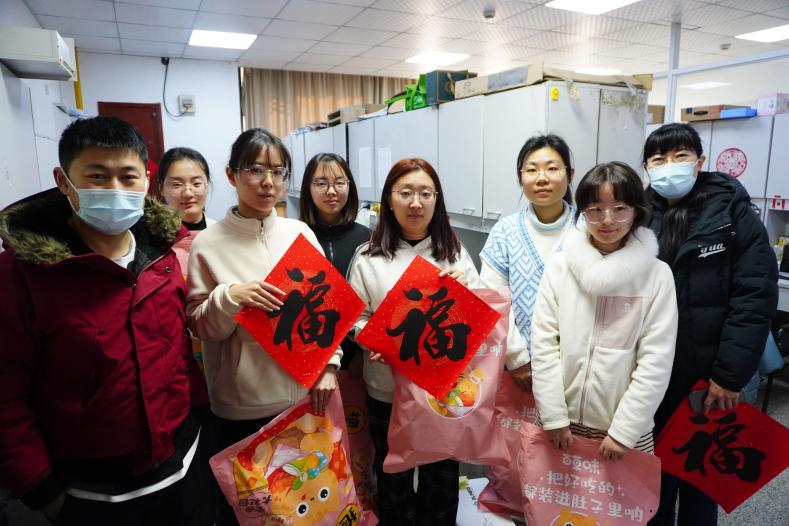 麻豆社 老师为留校同学送出了零食大礼包与新春福字,向依然坚守在实验室的同学们表达了关心,希望大家度过一个平安、温暖的春节,并鼓励同学们积极参与学校、麻豆社 组织的各类留校活动,增进友谊。此外,老师们也认真听取了同学们的反馈,并给予了针对性的建议和指导。