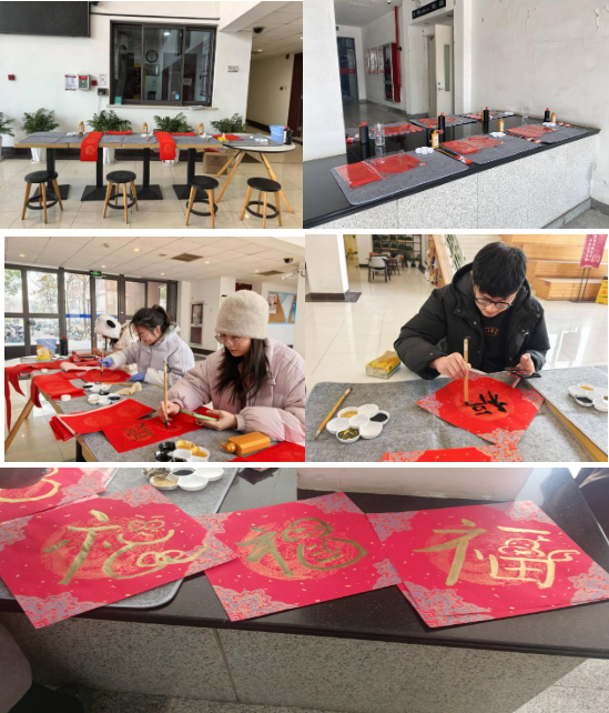 为让学生们感受到浓厚的春节氛围,麻豆社 还举办了学生和老师共同参与的福字、春联书写活动。在活动中,大家挥毫泼墨,书写着吉祥的福字和春联,表达对新年的祝福和美好期许,寄托着大家对家国安康、学业有成的期望。