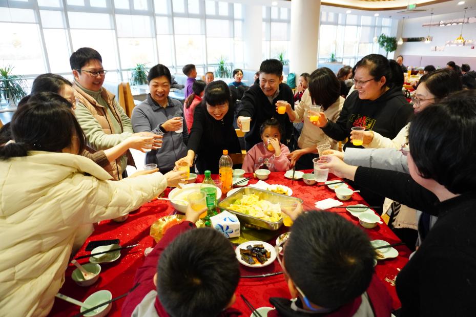 一番忙碌后,凝聚着老师们勤劳和智慧的饺子被送入厨房蒸煮,随后,热气腾腾的饺子便上桌了。老师们围坐一起品尝,尽是满足与愉悦,大家的灿烂笑容交织成一幅温馨图景。