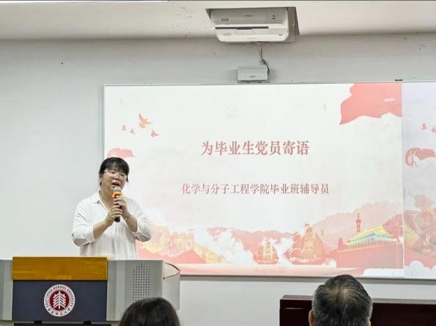 会议伊始,王媛媛以“严守党纪葆初心,勇担使命创未来”为毕业生党员们上了毕业最后一课,希望党员们奋力书写为强国建设挺膺担当的青春篇章。
