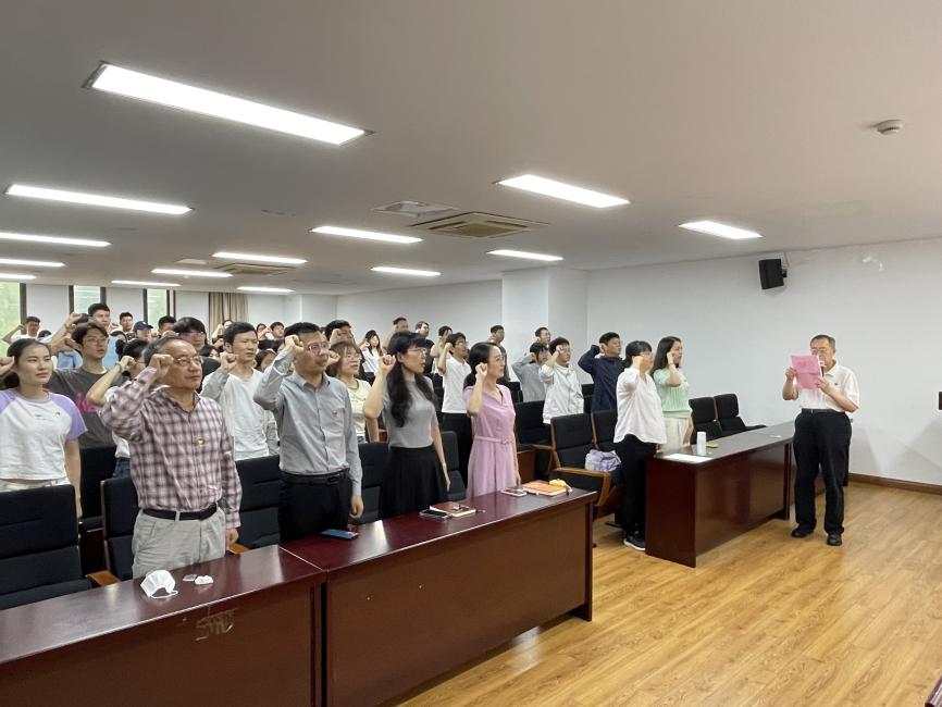 最后,由特邀党建组织员王毅老师带领与会师生党员庄严宣誓,鼓励党员同志坚定入党动机,永葆共产党员的政治底色。