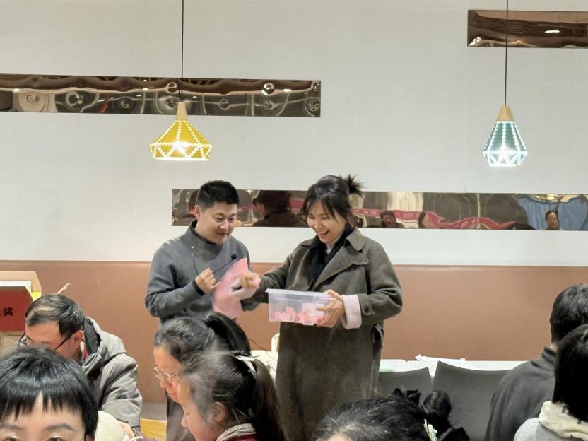 用餐过后,备受期待的抽奖环节重磅登场,瞬间将活动气氛推向高潮!随着幸运号码逐一揭晓,中奖的老师们惊喜不已,纷纷登台领奖、合影留念,镜头定格下一幕幕欢乐瞬间,掌声与欢呼声此起彼伏。