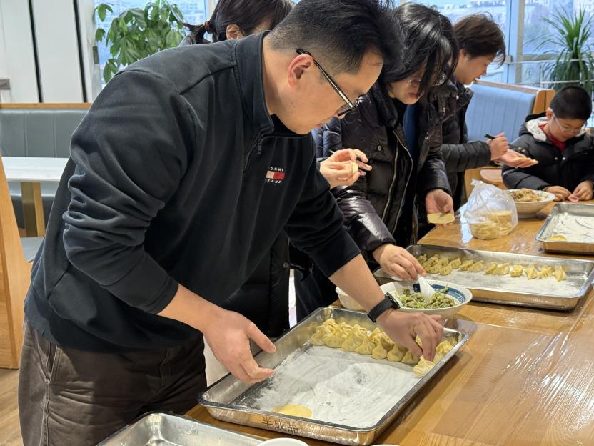 活动现场,餐桌之上早已备齐新鲜劲道的饺子皮、鲜香多元的饺子馅料,老师们手法娴熟,捻皮、填馅、捏褶一气呵成,捏出花边饺、元宝饺等别致造型,转眼间,一个个圆润饱满的饺子整齐列队,看上去花纹精巧、创意十足。包饺子的间隙,老师们分享着教学科研中的心得感悟和生活趣事,话语间满是真挚情谊,欢声笑语萦绕全场。