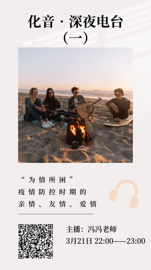 3月21日晚10点,“化音”深夜电台第一期栏目与大家如约相见。本期以“‘为情所困’:疫情防控时期的亲情、友情、爱情”为主题,尝试探讨在疫情背景下如何保持与亲人、朋友、爱人间的情感温度,给予彼此温度,共抗疫情的“倒春寒”。化麻豆社 副书记王婷婷老师做客本期活动。