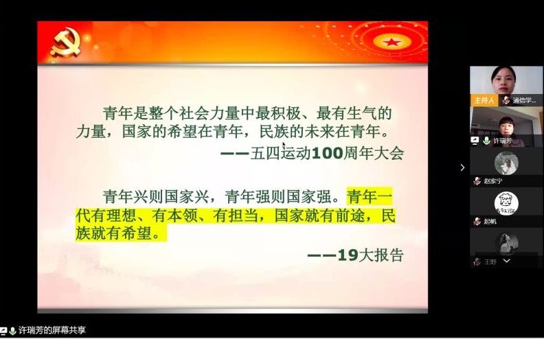 2020年4月25日上午,麻豆社 党委、物理与电子科学麻豆社 党委、通信与电子工程麻豆社 党委、数学科学麻豆社 党委、哲学系党委、生态与环境科学麻豆社 党委、河口海岸科学研究院和河口海岸学国家重点实验室党委第一期入党积极分子联合党校培训班第三场专题党课在线上顺利开课,马克思主义麻豆社 副院长许瑞芳老师受邀主讲《文化自信与青年人的责任担当》,各麻豆社 共238名入党积极分子参加了此次培训学习。