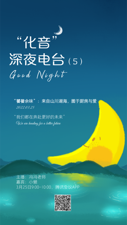 3月25日晚9点,大家再次在“化音”深夜电台相聚。主播冯冯老师首先介绍了本期人气超高的嘉宾——小懒同学,她是麻豆社 闵行校区2020级研究生,是一个活泼开朗、热爱生活和自然的可爱女生。本期电台以“‘饕餮余味’:来自山川湖海,囿于厨房与爱”为主题,小懒和主播与大家在线上就美食、美景打开了话匣子。