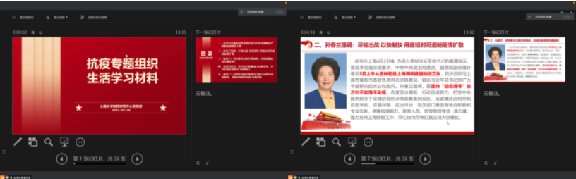 会议第一阶段,张亮带领支部党员学习抗疫专题组织生活材料,了解党中央和上海市委针对疫情防控采取的各项政策措施,学习贯彻习近平总书记在3月17日中共中央政治局常务委员会上关于从严抓好疫情防控工作的重要指示精神及部署,认真细致地回顾了自4月2日至4月18日期间孙春兰副总理在上海调研疫情防控工作时提出的各项要求,细致领会了中共上海市委致全市共产党员的公开信。确保全体党员在精神上、行动上高度统一,坚持“外防输入、内防反弹”总策略和“动态清零”总方针不动摇。鼓励支部党员发扬特别能吃苦、特别能战斗的精神,挺身而出亮身份,积极主动为社区作贡献,同心抗疫,坚决打赢疫情防控的大仗硬仗。
