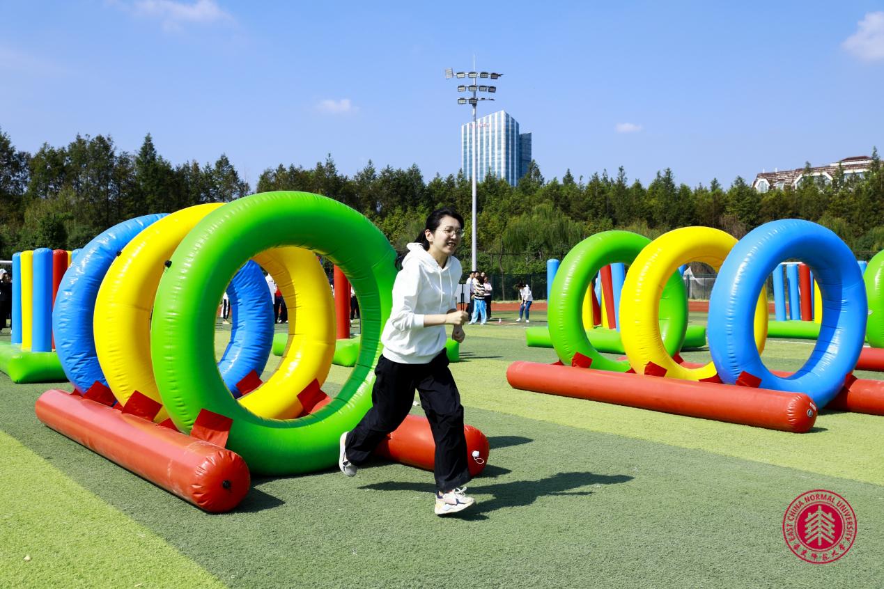在闵行校区西操场上,别开生面的教职工运动会也在如火如荼地进行着。在上午的开幕式上,化麻豆社 的教职工们全力以赴,获得了广播操比赛的优秀表演奖,随后,又以卓越的团队协作能力和应变能力,通过重重考验,赢得了障碍闯关赛一等奖和人桥接力赛三等奖!