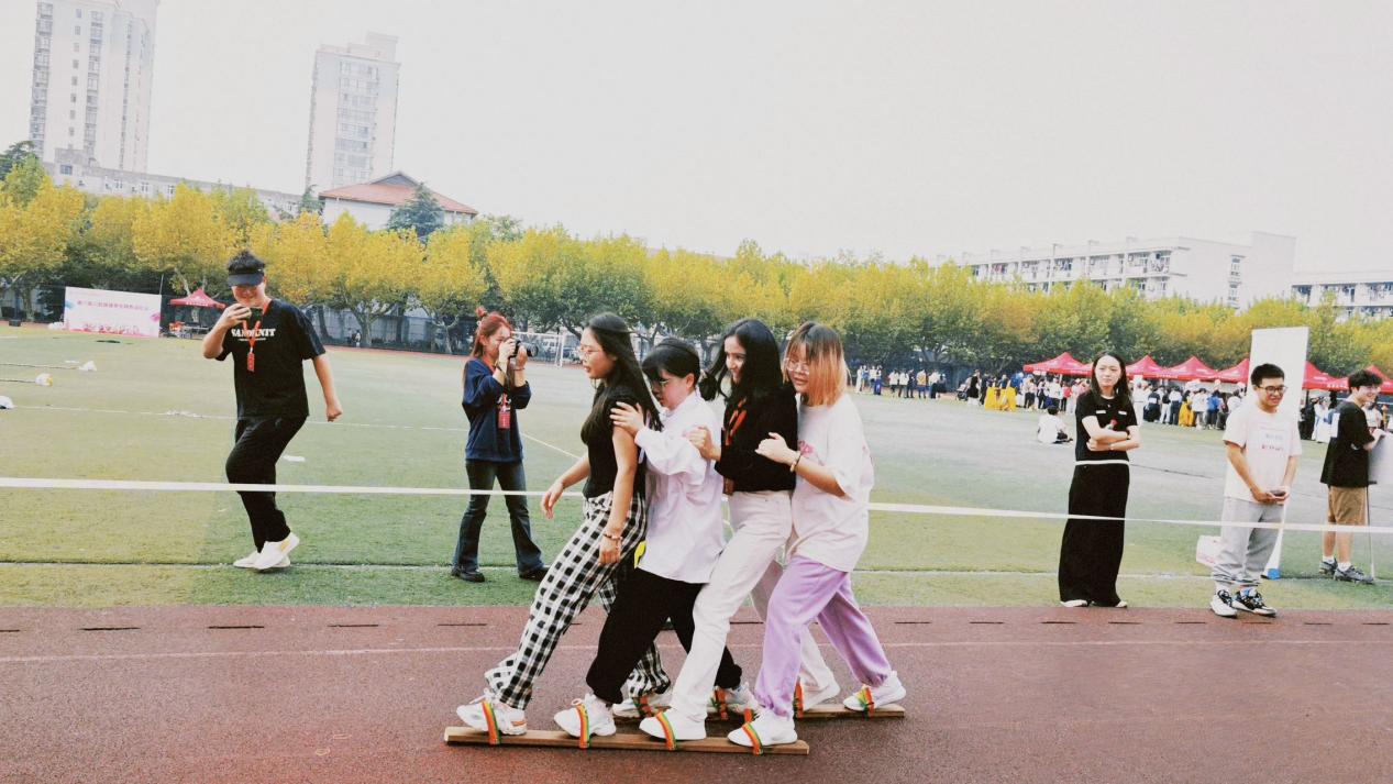 教师们齐心协力,在协力竞走项目中配合默契,肩并肩行进,如龙舟在水中疾驰。在现场师生们的欢呼声中,他们顺利完成了比赛,展现了团队协作的风采。