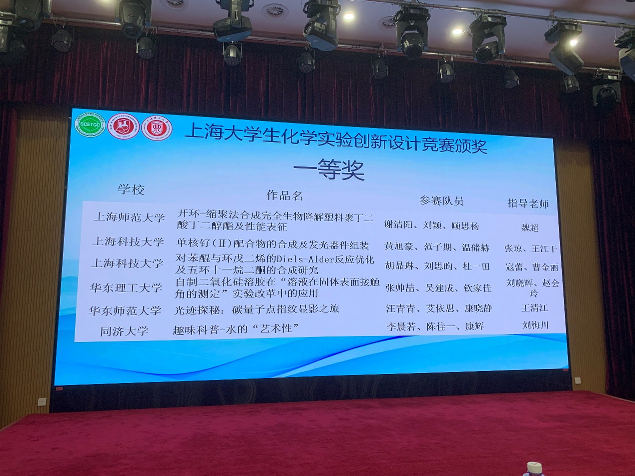 在同期举行的上海大学生化学实验创新设计竞赛中,经过校赛选拔的三支队伍作品质量优良,在经历初赛评审后也全部进入决赛,经过线上答辩,最终参加科普赛道的作品获得了一等奖,新创实验赛道和已有实验改进创新赛道作品荣获二等奖。至此,我校本次参赛的个人和队伍全部获奖!