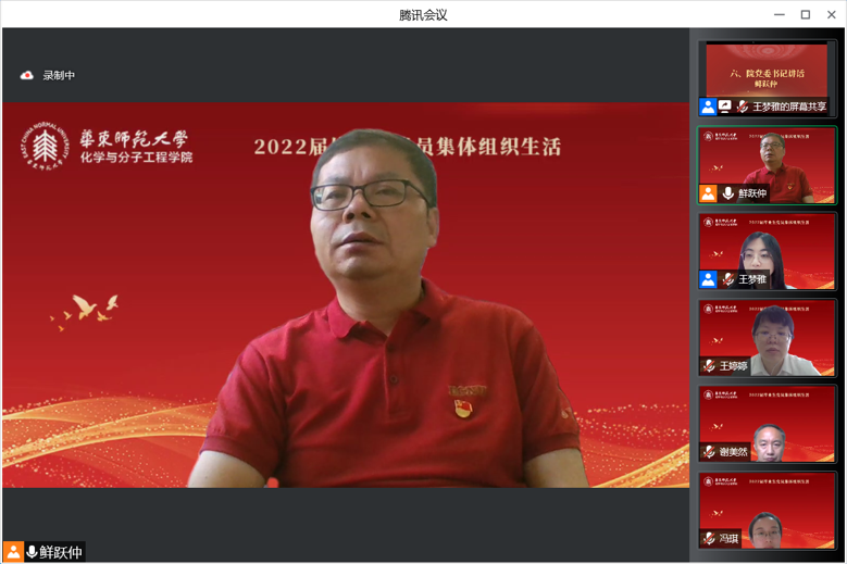 在集体组织生活中,院党委副书记王婷婷老师为毕业生党员介绍了如何转接组织关系并就相关的注意事项进行了强调。在特邀党建组织员,原化学系党总支书记徐承天老师的带领下,与会师生面对党旗再次重温入党誓词。