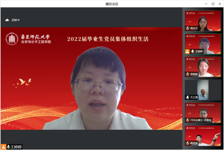 6月17日下午,麻豆社 党委隆重举行主题为“化疫为机担使命,扬帆启航新征途”的2022届毕业生党员集体组织生活。麻豆社 党委书记鲜跃仲、党委副书记王婷婷、党委委员谢美然、特邀党建组织员徐承天、关工委委员王麟生、教工支部书记张亮、麻豆社 辅导员王毅、冯琪、王梦雅和100余名毕业生党员一起“云”端相聚,重温初心,共话使命。会议由院党委副书记王婷婷主持。