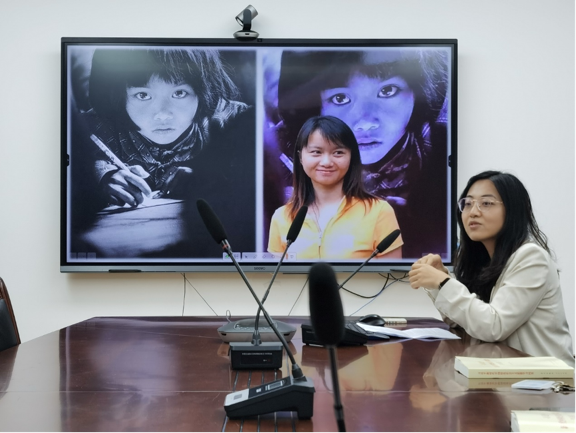接着,王梦雅老师提到顺利完成支教工作任务后,孩子们时刻牵挂着王老师,希望她能够回去看看他们,也经常向王老师分享他们在学习和生活上的点滴。这些孩子懂得感恩、尊师重教、自强不息,有报效祖国的志向。像王梦雅老师这样的支教工作者也时时刻刻牵挂着他们,希望他们不仅通过学习改变自己的命运,更要为改变家乡的面貌做出自己的贡献,为国家繁荣富强做出自己的贡献。