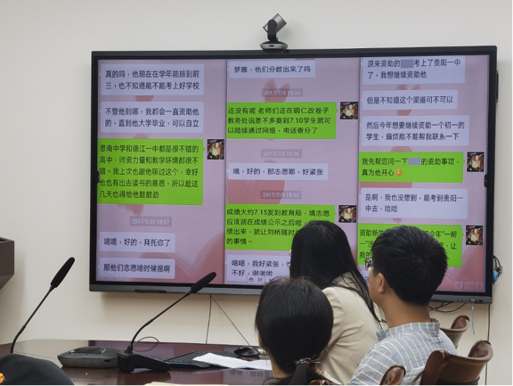 王老师所在支教服务队“一帮一”爱心帮扶助学活动已有十几年的历史,针对煎茶中学初中、高中以及煎茶镇各乡村小学家庭贫困的学生,每年通过初期申请和资格排查,最终选出一百多名“一帮一”受助候选人,支教团成员会联络社会各界爱心人士对其中品学兼优或急需帮助的学生进行资助,采取奖助结合的方式,关爱贵州山区中小学生,帮助其完成学业,传承爱心公益事业。