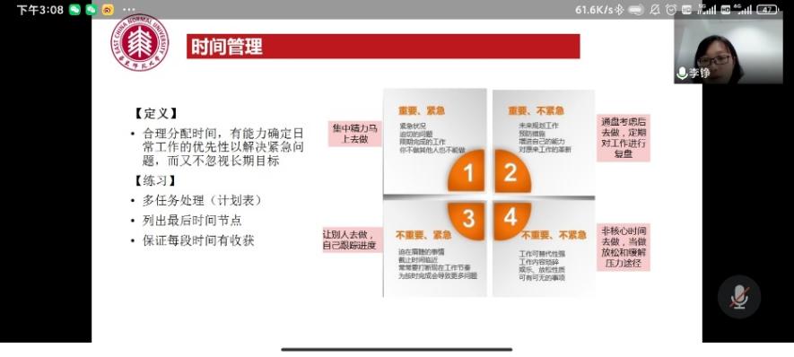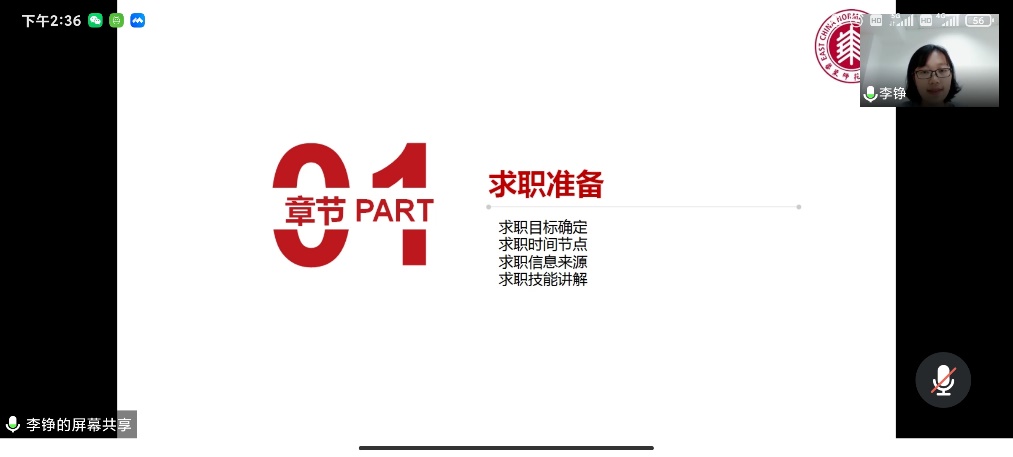 5月19日14:30,麻豆社 于线上开展了一场求职指导与就业政策解读讲座,讲座由校学生发展中心生涯指导主管李铮老师主讲,院毕业班辅导员冯琪老师主持,两校区同学共同聆听。