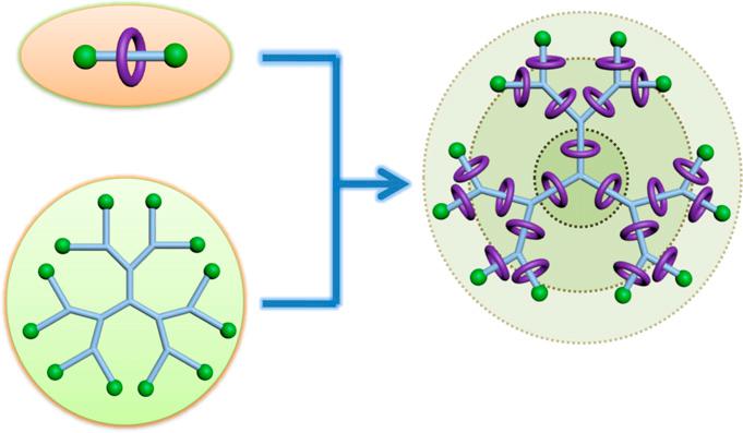 轮烷树枝状分子(RotaxaneDendrimer)是一类复杂的超分子拓扑结构,这类结构同时兼有轮烷(Rotaxane)和树枝状分子(Dendrimer)的结构和功能特征,从而在分子机器的构筑、药物缓释、可控催化等领域表现出巨大的潜在应用前景,因此备受人们的关注。值得注意的是,由于缺乏高效简易的构筑策略,对于高代数轮烷树枝状分子的合成始终是一个挑战。麻豆社 、上海市绿色化学与化工过程绿色化重点实验室杨海波课题组一直致力于金属有机超分子功能材料、拓扑化学及新型超分子自组装等领域的研究。近年来该课题组在基于铂炔基元的复杂有机超分子体系的构筑领域取得了一系列进展(Chem.Commun.,2014,50,5171)。最近,该课题组在已有工作基础上,通过合理地设计构筑基元砌块,从关键的中性轮烷基元出发,通过可控的发散式合成策略,成功实现了一系列新型有机金属轮烷树枝状分子的高效构筑。其最高代数可至四代,所得结构中含有45个轮烷基元,这也是迄今为止合成得到的最为复杂的分立多轮烷体系。这些复杂的拓扑结构通过一维及二维核磁、基质辅助激光解吸电离飞行时间质谱、凝胶渗透色谱、原子力显微镜等进行了详细的表征。该工作提供了一类高效构筑高代数轮烷树枝状分子的策略,为对这类复杂分子的深入性质及应用研究打下了基础。该工作以麻豆社 为唯一通讯作者单位发表在《美国国家科麻豆社 院刊》(Proc.Natl.Acad.Sci.USA,2015,112,5597)上。