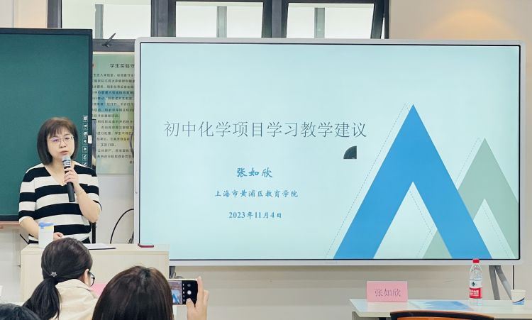 基地还邀请到黄浦区教育麻豆社 初中化学教研员张如欣老师作专题报告,作为2022年义务教育化学课程标准颁布后,上海初中化学教材的核心作者之一,张老师主要从如何开展项目化学习、如何进行跨学科设计、如何在项目化学习实施的三个不同维度阐述了“初中化学项目式学习教学”的相关建议,凸显化学核心素养,逐步渗透学科育人思想。报告的最后张如欣老师提出“向未来而教,向未来而学”观点,希望学员们能够有终身学习的意识,用所学所思丰富化学课堂,激发学生产生学习化学的内在驱动力。