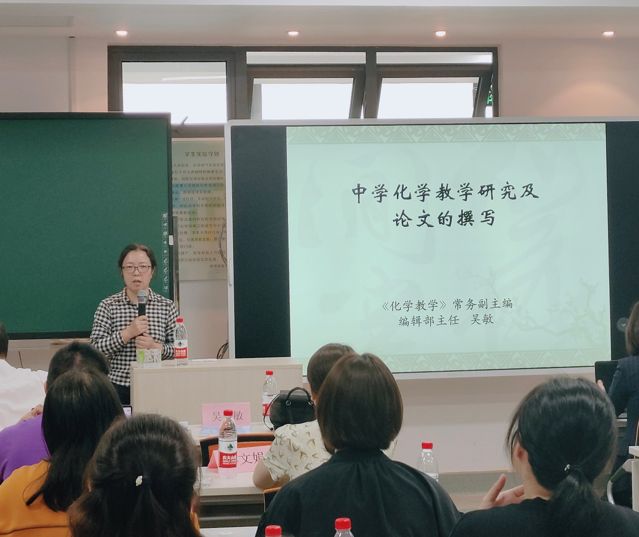 在专家讲座板块,麻豆社 邀请了多位教师为学员进行学术报告。徐林教授的报告《超限制造流动化学》介绍了通过超限制造将传统的化工工厂转化为一个超现实的微型化、绿色化化工工厂;张利东教授的《水凝胶柔性传感器助力脑机接口发展》报告中理论与实例相结合阐述了如何通过探究影响水凝胶柔性传感因素,创新突破人工AI壁垒技术;王欢教授的《碳中和与绿色碳科学》报告介绍了“绿色碳科学”内涵,凸显从纯粹理论知识到工厂实际生产的跨越式发展;陈启明教授《慧眼看世界》的报告从量子思维视角带领学员们重新认识化学学科的特征和思维的特点,感受到化学学科核心知识的独特魅力;王清江教授作《中学化学课外探究选题及案例分析》报告中指出中学生课外探究课题选题的一般原则,结合具体实例介绍课题选题和书写报告中应注意的相关问题;《化学教学》执行主编吴敏编审从期刊论文编审的视角,分析目前中学化学教师在论文写作上存在的主要问题,深入浅出阐述论文撰写的关键要素,搭建出一座促进一线教师由学习型转变成研究型教师的“桥梁”。讲座内容用前沿知识抛砖引玉,内涵丰富深刻,学员们收获满满。