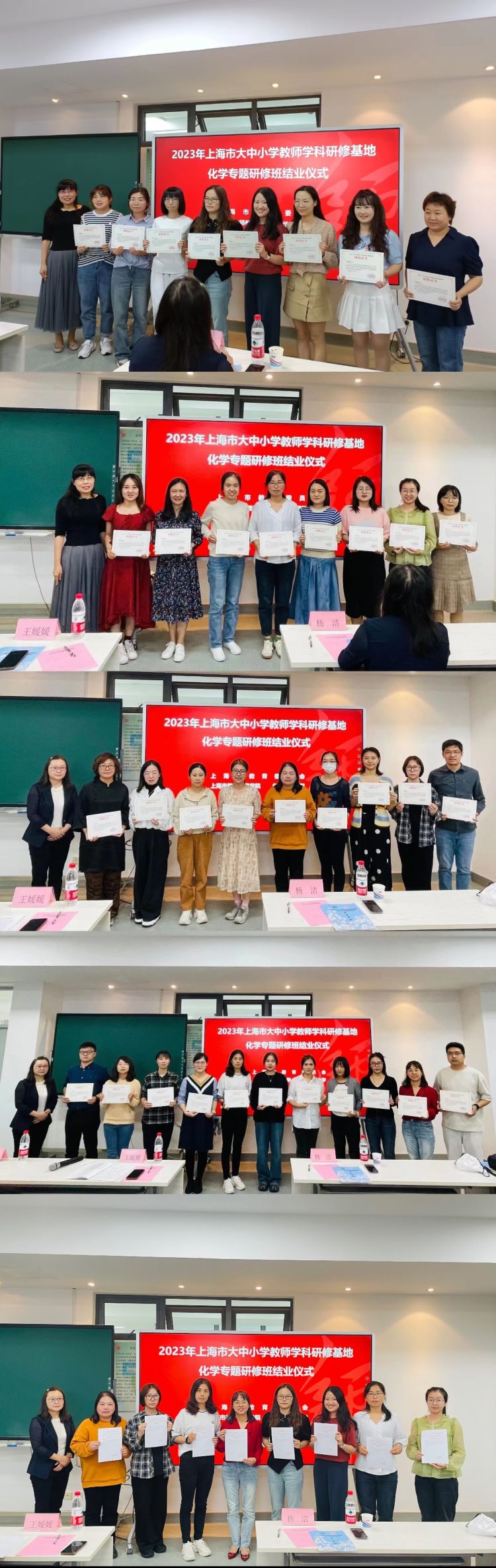 千里之行始于足下,学员们将培训中所学所思所行与课堂教学有机融合,基于学科研修中获得教学上创新的灵感,达成知行合一的境界。上海市教师教育麻豆社 领导杨洁主任和麻豆社 王媛媛副院长在班级结业仪式上向全体培训教师学员颁发研修证书,并为其中的八位老师颁发“优秀学员”证明。杨洁主任在致辞中希望学员们把这次浸润式的培训中收获转化为教育教学科研成果,培训暂时结束并画上了一个句号,在学思行中不断强化化学学科研修赋能!
