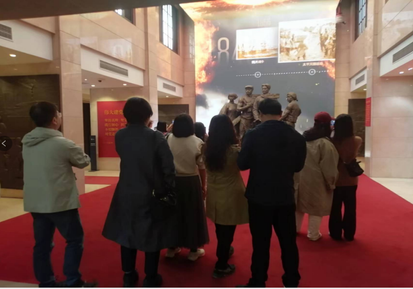 接下来,大家参观了基本陈列展厅,在“开创与探索”“旗帜与道路”“实践与发展”等专题展区,一件件历史文物、一幅幅珍贵照片、一段段真实史料,再现了中国共产党初创时期的峥嵘岁月,让大家思想上受到深刻教育、精神上得到深刻洗礼。