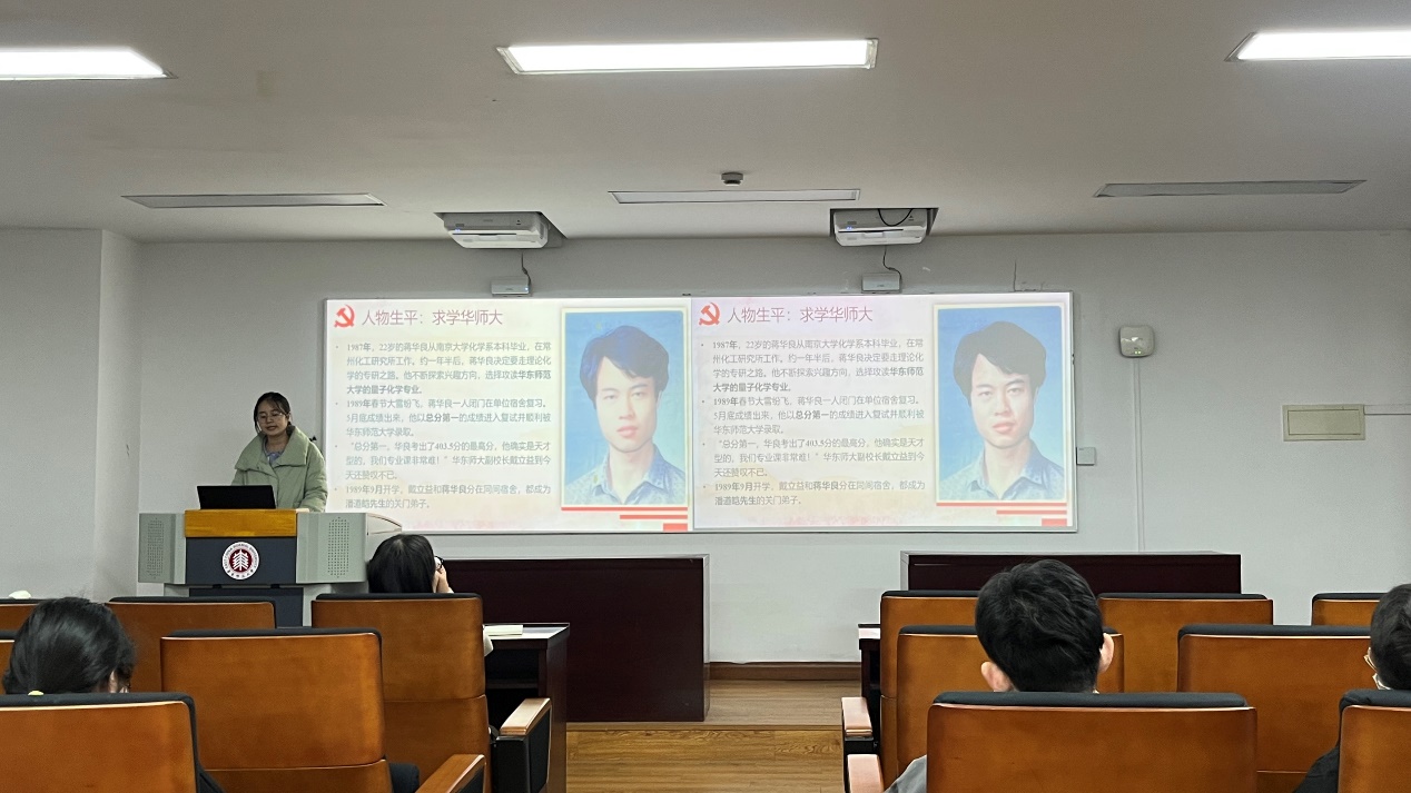 本次党日活动,有三位同学介绍三位华东师大杰出校友科学家,学习老一辈科学家热爱祖国和敢为人先的精神,坚守学术操守和道德理念,激发学生将个人科研理想融入祖国前途和命运。