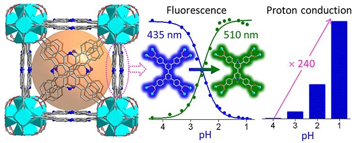 、上海市绿色化学与化工过程绿色化重点实验室高恩庆课题组近年来致力于刺激响应性MOF和COF材料研究。该课题组博士研究生杨帅亮等在MOF的pH响应性研究中首次发现了MOF中的协同质子化现象及荧光和质子传导效应。