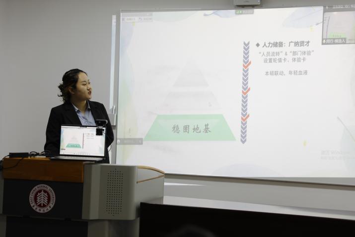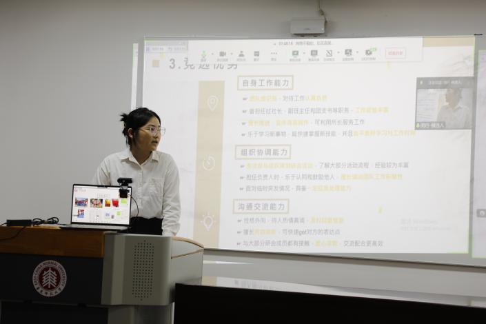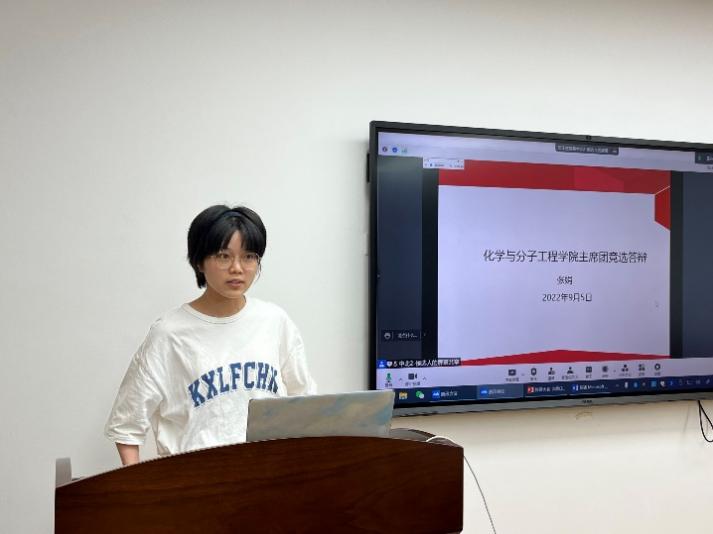 第八届研究生会执行主席赵捷向全体成员总结了过去一年的工作情况。她首先介绍了第八届研会的组织架构调整,概述了这一年研会举办的涵盖“文-娱-团-学-就业”等方面的37场活动,特别介绍了“化音电台”“化影”“化聚生活”等系列主题活动,并指出麻豆社 研会在本年度对校会工作的支持与配合、与兄弟院系的积极合作。赵捷说到,第八届化院研会充分把握了本院同学的需求,有针对性地对各部门进行了调整和完善,为化院师生提供了更好的服务,此外,也考虑了本院分校区教学的实际情况,增强了线上宣传平台建设。对于下一届研会的期许,赵捷则希望能继续与兄弟院系求合作、促创新,积极开展更多让同学们喜闻乐见的活动。