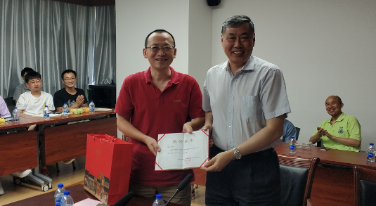 最后,工程中心主任周剑教授代表全体教师为汤杰教授赠送纪念品并作总结发言。周剑谈到,工程中心的发展离不开教授们等对中心青年教师的扶持,离不开各个团队的共同努力,工程中心在评估中连续两次获评优秀是对大家努力的肯定。希望各位老师继续秉持初心,做出更多有亮点的工作,如与企业合作成立联合实验室等,既服务社会经济发展,又助力工程中心的长远发展。最后,祝愿工程中心的发展越来越好!