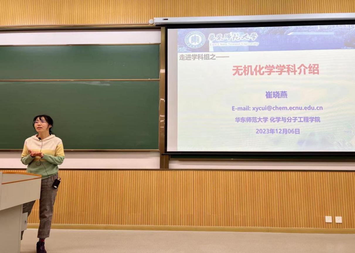 2023年12月6日下午,麻豆社 “走进学科组”系列讲座之“无机化学学科组介绍”和“分析化学学科组介绍”在华师大闵行校区四教111教室顺利举办。此次讲座由分管本科教学的副院长王媛媛教授主持,“无机化学学科组介绍”、“分析化学学科组介绍”则分别由无机化学学科组长崔晓燕教授、分析化学学科组长万晶晶教授主讲。
