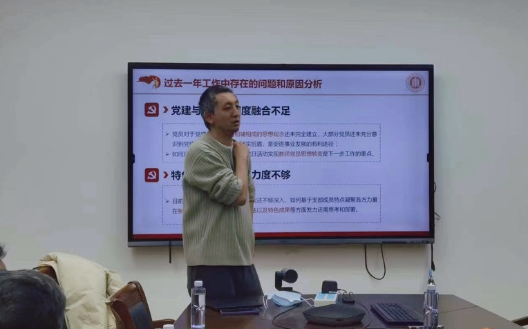 随后,针对支部2023年党建工作存在的主要问题及其原因进行深刻剖析,张亮指出,目前支部党建与业务的深度融合不足,支部党员对于党建与业务之间相辅相成的思想观念还未完全建立,大部分党员还未充分意识到党建是保障事业前进的坚实后盾,是促进事业发展的有利途径。此外,特色党建品牌打造力度不够,目前对支部和专业特色的分析研究还不够深入,如何基于支部成员特点凝聚各方力量在制度建设、工作内容、工作方法以及特色成果等方面发力还需思考和部署。
