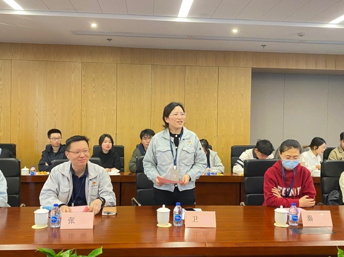 参观结束后,师生一同前往会议室参加座谈会,座谈会由上海华力人力资源部招聘与员工关系科科长卫老师主持。蒋旭对上海华力接待人员表示感谢,她谈到,近年来,麻豆社 每年都有不少毕业生到上海华力就业,感谢公司对毕业生的认可和培养,期待通过此次“访企拓岗促就业活动”进一步加快就业联动,拓宽合作方向。