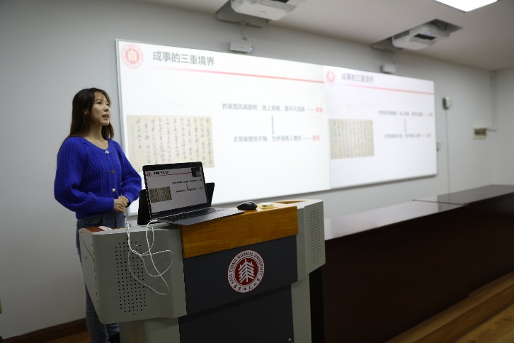经验分享:周雪同学分享的主要内容是如何在科研中保持良好的心态。她建议大家要积极与周围的师生交流,面对科研的失败要积极寻求经验,适当放空自己,享受闲暇,可以去操场走走,可以去看看星空,周雪同学强调,做科研需要勇敢、坚持和乐观。