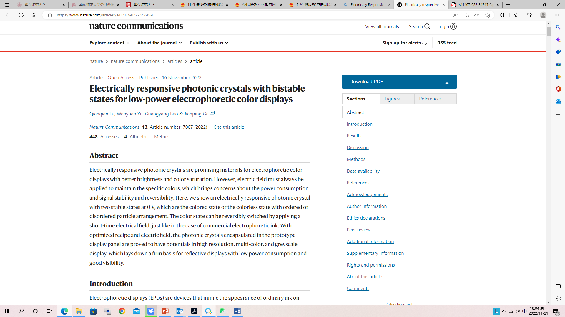 基于电子墨水的电泳显示器具有节能、护眼的技术优势,被广泛应用于电纸书、电子标签、智能手机以及公交显示站牌等应用场合。电泳型光子晶体具有色彩饱和、颜色可调、与现有技术兼容的特点,是电泳显示的理想材料,有望解决商用滤膜型彩色电泳屏饱和度低的技术难点。然而,传统电致变色光子晶体响应需要持续施加电压来维持特定结构色,致使其始终无法适配于具有“双稳态”或“多稳态”特征的电泳显示技术。最近,麻豆社 葛建平教授团队发展了一种具有双稳态、可逆切换特性的新型电响应光子晶体液态材料,并将其用于开发低功耗、全彩色电泳显示设备。2022年11月16日,相关成果在线发表在知名学术期刊Nature Communications (Nat. Commun,. 2022, 13, 7007) 上。