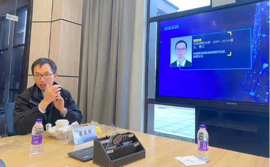 参观结束后,一行人前往会议室参加座谈会。座谈会第一环节,由麻豆社 2014届博士毕业生、研发化学服务部助理主任翟昌伟进行交流。翟博回忆了自己在师大校园读书、科研和运动的点滴,介绍了自己从入职到现在在药明康德的成长与进步。