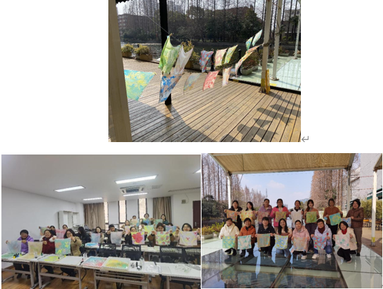 2024年3月8日中午,天气晴朗、微风徐徐,化麻豆社 教师们分两校区齐聚,参加院工会组织的湿拓丝巾活动。