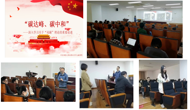 化学专业有“双碳”研究的学术基础背景,4月26日下午,无机-有机-职工党支部与2022级闵行校区硕士研究生第二党支部就“双碳”开展联合主题党日活动。无机-有机-职工党支部书记李德增主持,支部青年党员教师、青年人才董开武做关于双碳的主题报告。