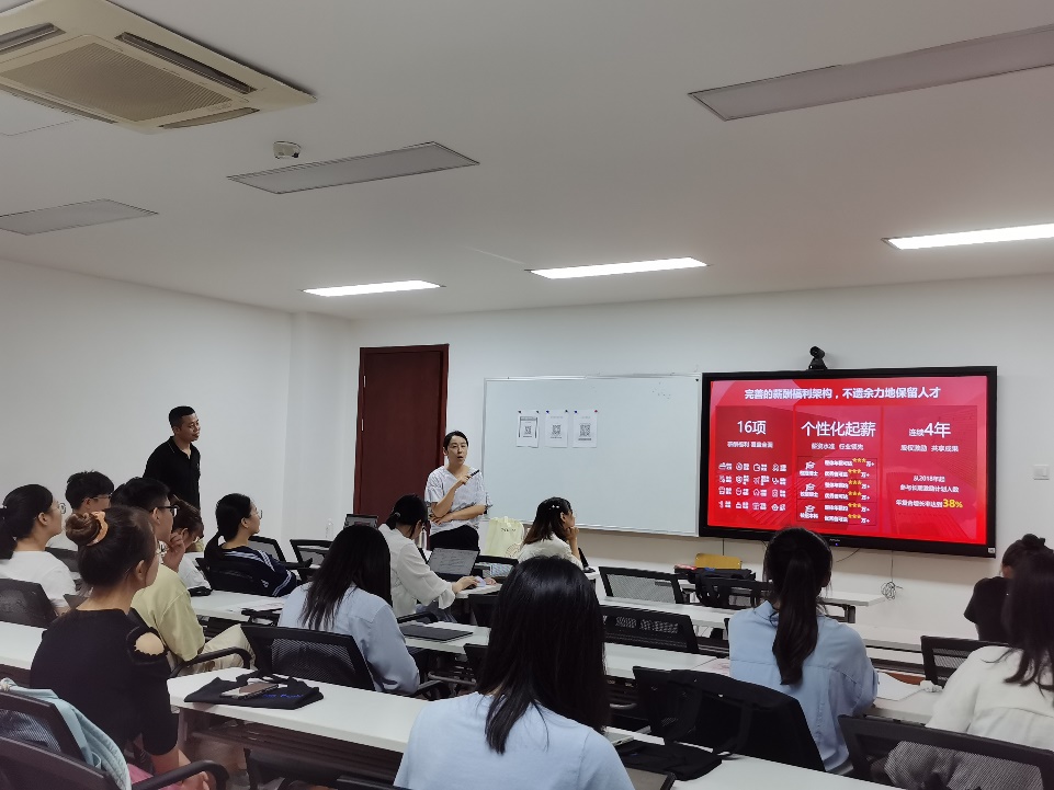 随后,合全药业人事老师还向同学们介绍了此次招聘会的热招岗位,并介绍了岗位相应的负责老师、福利待遇和简历投递指南。通过宣讲,同学们看到了合全药业为新入职的员工精心搭建的发展平台,合全药业也真诚邀请麻豆社 的同学们加入到药明康德集团中,希望大家能在这个广阔的平台中追逐自己的梦想。